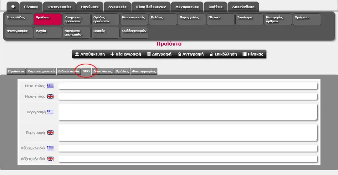 Επεξήγηση πεδίων SEO